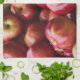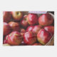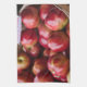 Küchenhandtücher mit Mundtränken aus roten Äpfeln in einem Korb zum Verkauf auf dem Markt