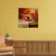 Artwork aus rotem Apfel auf einem Tuch auf einem Tisch. Dies ist in einem malerischen Stil mit abstraktem Hintergrund. Dieses auffallende Gemälde steht einem realistisch gerenderten roten Apfel gegenüber, knusprig und einladend, vor einem dynamischen, abstrakten Hintergrund warmer Farben. Die ausdrucksstarken Rot-, Orangen- und Gelbtöne schaffen eine lebendige Atmosphäre und machen den einfachen Apfel zu einem Brennpunkt intensiver Farben und Licht für jeden Raum. Ein moderner Einfall in ein zeitloses Stillleben. Ein einsamer roter Apfel, mit üppigem Detail dargestellt, Erholungen auf einem sanft drapierten Tuch, seine einfache Form bildet einen Kontrapunkt zum feurigen, ausdrucksvollen Farbtanz im Hintergrund. Dieses Kunstwerk kann individuell angepasst, gedruckt und heruntergeladen werden.
