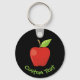 Roter Apfel mit Blattsymbol Benutzerdefinierte Hintergrundfarbe. Benutzerdefinierter Text auf beiden Seiten.