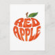 Das Design enthält die Wörter "Red Apple", kreativ in Form eines Apfels mit einem grünen Blatt oben angeordnet. Die Typografie ist kühn und farbenfroh und vermittelt einen fröhlichen und lebendigen Eindruck.