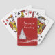 Roter Hintergrund mit einem weißen Weihnachtsbaum. Frohe Festtage in fett-modernem Text. Sehr moderne und lustige Weihnachtskarten.