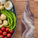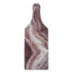 Auf diesem paddelförmigen Glasschneidebrett, das ein Bild der farbenfrohen Muster des roten Banded Agate zeigt, kann man sich sicher würfeln und würfeln. Ideal für Wein- und Käseproben!