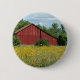 Originelles Foto einer roten Scheune in einem Gelbblumenfeld.
