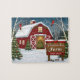 Capture the true spirit of the holidays with this charming jigsaw puzzle! This detailed, festive illustration features a classic red barn covered in snow at a Christmas Tree Farm. A brightly lit tree shines from the doorway, while red cardinals perch on birch trees nearby. This puzzle is a perfect, nostalgic holiday activity for the whole family and makes a wonderful seasonal gift. Bring the cozy magic of a winter wonderland and farmhouse Christmas home!