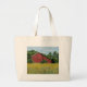 Originelles Foto einer roten Scheune in einem Gelbblumenfeld.