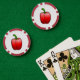 Roter Glockenpfeffer auf Poker Chips für eine Geburtstagsparty.