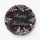 Red Berries & White Blätter Black Holiday Party Pappteller
