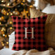 Red Black Buffalo Plaid Monogram Holiday Kissen