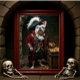 Dieses beeindruckende Bild zeigt einen weißen, französischen Bulldog mit schwarzen Flecken, der wunderschön als Pirat verkleidet ist. Es trägt einen gefederten Tricornhut und einen ausgefeilten roten Mantel mit glänzender Goldverkleidung. Darunter eine blaue Weste mit goldenen Details und ein weißer, gezackter Jabot vervollständigen die bemerkenswerte Uniform. Die Kaninchen stehen sicher neben einer offenen Schatztruhe, die mit Gold überflutet ist und einen ernsthaften und abenteuerlichen Entdecker verkörpert.