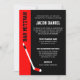 Invitations modernes de hockey rouge et noir sur le thème Bar Mitzvah invitations. Personnalisez facilement votre événement.
