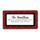 Ein kariertes Schwarz-Rot-Muster schmückt dieses Weihnachts-Rücksendelabel. Personalisieren Sie es mit Ihrem eigenen Namen und Ihrer eigenen Adresse. Entworfen für Sie von BlackBerry Boulevard.