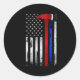 Red Blue Line American Flag Ax Firefighter P Runder Aufkleber