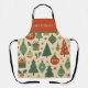 Feiern Sie die Saison mit dieser modernen Schürze in Rot und Blau Mitte des 20. Jahrhunderts. Mit nostalgischen geometrischen Mustern, Kiefern und Zierakzenten ist es perfekt für das Backen im Winter und Herbst. Diese moderne Küche ist auch ein charmantes botanisch-thematisches personalisiertes Geschenk für festliche Köche und Gastgeber.