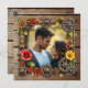 Steampunk themed Hochzeit Einladung. Stampunkerrote und gelbe Blumen, Metallgestänge und bedrängter Hintergrund aus verwittertem Holz. Laden Sie Ihr Lieblingsbild im personalisierenden Bereich hoch und bearbeiten Sie den Text auf der Rückseite, um Ihre eigenen Hochzeitsinformationen hinzuzufügen.
