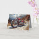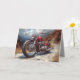 Grußkarte mit Malerei eines roten Bobber Motorrades auf einer Bergstraße. Ideal als Geburtstag, Jubiläum, Vatertag oder Rentenkarte für Motorradfreunde, aber auch für andere Ausdrücke oder Anlässe gut geeignet. Passen Sie diese Karte mit Ihrer eigenen Nachricht im Inneren an.