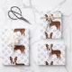 Red Boston Terrier Cartoon Dog Pattern & Grey Paws Geschenkpapier Set