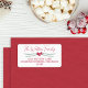 Weihnachts-Rücksendeadressen-Aufkleber für Ihren ausgehenden Urlaub mit Ihrem Namen in einem roten Drehbuch und Ihrer Adresse in einem roten Schriftart getrennt durch eine Weihnachtsgartenteiler mit einem hübschen roten Bogen. Personalisieren und kaufen Sie heute, um Ihre Weihnachtspost eine festliche und persönliche Touch zu geben!