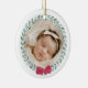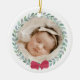 Feiern Sie das erste Weihnachtsfest Ihres Mädchens, indem Sie den Baum mit einem individuellen Ornament dekorieren, das mit dem Foto Ihrer Tochter in einem einfachen Kranz aus Grün und einem roten Bogen bedruckt ist. Auf der Rückseite kannst du deinen Namen und das Jahr hinzufügen, in dem sie ihr erstes Weihnachtsfest feiert! Ein tolles Geschenk für neue Eltern und Großeltern in dieser Urlaubssaison.