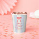 This coquette baby shower paper cup features a red bow on a cream background with pale blue stripes. Personalize it for your needs. You can find matching products at my store.
