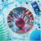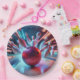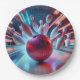 Eine Bowlingkugel ist auf einer Spur in Bewegung und bewegt sich in Richtung der Buttone mit dynamischem Energieeffekt