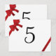 Passen Sie diese festlichen Red Bows Winter Wedding Wedding Tischnummern an und erstellen Sie für jeden Tisch bei Ihrem Empfang, Brautparty oder Verlobungsfeier im Dezember eine andere Karte. Dieses elegante rot-weiße Bogen-Design erinnert an ein umhülltes Weihnachtsgeschenk.