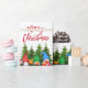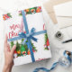 Modern Brush Script Frohe Weihnachten Farbige Fun Wasserfarbenspiele mit Pine Trees Wrapping Paper - Red Script