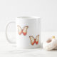 two red butterflies on each side of a classic mug.