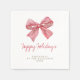 Die Red Candy Stripe Bow Holiday Party Napkins mit einer aufrufbaren Schlagzeile in roter Handschrift und personalisiertem Abzeichen