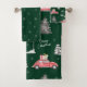 Red Car Winter Pattern Frohe Weihnachten Grün Badhandtuch Set