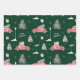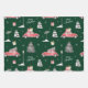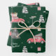 Red Car Winter Pattern Frohe Weihnachten Grün Geschenkpapier Set