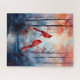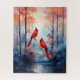A gorgeous puzzle for bird lovers featuring a glorious autumn woodland forest scene with red cardinal songbirds for nature lovers.