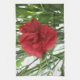 Dieses phantastische Küchentuch zeigt ein detailliertes Foto einer atemberaubenden roten Blume. Das Foto wurde mit Makrofotografie aufgenommen, um die Schönheit dieser leuchtend roten Blüte, umgeben von grünem Blattwerk, zu zeigen.