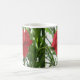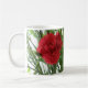 Diese wunderschöne Tasse zeigt ein detailliertes Foto einer atemberaubenden roten Nelkenbildung Blume. Das Foto wurde mit Makrofotografie aufgenommen, um die Schönheit dieser leuchtend roten Blüte, umgeben von grünem Blattwerk, zu zeigen. Das Design wird auf einer weißen Tasse gezeigt, ist aber auch in einer Reihe anderer Stile und Farben von Tasse erhältlich.