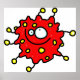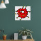 Niedlicher Cartoon rote bakterielle Keimkreatur auf einem Poster.