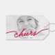 Red Cheers Calligraphy Script Modernes Foto Holida Geschenkanhänger