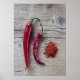 Fresh, dried and coarsely ground Red Chili Pepper on wooden board