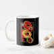 Rote chinesische Drachen sind mythische Wesen, die das Glück und den Power symbolisieren (die beiden Symbole in diesem Design). Sie sind auch eines der chinesischen Tierschutzzeichen. Grafische Design-Illustration auf der Kaffee-Tasse für Drachenfans und China-Mythologen.