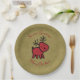 Papier Teller, die lesen: Frohe Festtage und Frohe Weihnachten. Text ist auch anpassbar oder abnehmbar. Entworfen mit einer roten Weihnachtsreiniger Illustration. Feierlich und niedlich. Der Hintergrund ist ein digitales Bild von braunem Kraftpapier, nicht von tatsächlichem Kraftpapier.