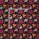 Red Clover Kleeblatt Pattern St. Patrick`s Day Fabric. St Patricks zeitgenössischer Stoff mit von Hand gezeichnet rotem und orangefarbenem Kleeblatt, Kleeblatt auf schwarzem Hintergrund.