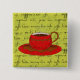 Red Coffee Cup Art on Lime Green Script Wörter Button