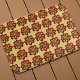 Treten Sie aus der Dusche auf diese bequeme Badematte, die das Foto einer roten Collarette Dahlia-Blume mit weißen, inneren Blättern auf gelbem Hintergrund zeigt und in einem sich wiederholenden Muster bedruckt ist. Ein schönes, blumengeschmücktes Design! Wählen Sie die Größe Ihrer Badematte aus.