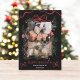 Teilen Sie Ihre Urlaubsstimmung mit dieser bezaubernden Weihnachts- und Neujahrskarte. Dieses Design mit zarten roten Kokettenbögen, festlicher Vegetation und floralen Akzenten auf schwarzem Hintergrund bildet einen schönen Rahmen für Ihr Foto. Ideal, um mit einer schicken und skurrilen Touch den Feiertag zu verbringen, ist es eine ideale Wahl für diejenigen, die elegante und festliche Schreibwaren Liebe geben. Vollständig anpassbar mit Ihrem Familiennamen und Gruß für eine persönliche Touch.