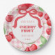 Red Coquette Bow Cherry First Birthday Party Paper Plates