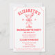 Machen Sie sich bereit zum Party, wie es ist der "80er mit unserer schicken Junggeselinnen-Abschied Einladung! Mit seiner eleganten Martini-Line-Grafik eines roten Martini-Glasfensters im Retro-Country-Stil ist diese Einladung ein Set für ein stilvolles und raffiniertes Fest.