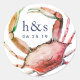 Red Crab Wedding Monogram Runder Aufkleber