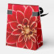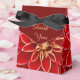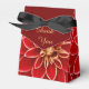 Close up vibrant photograph of a beautiful red Dahlia flower on favor boxes to customize with your own text or delete text to keep design only.