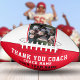 Red Danke, Coach Team Name und Team Foto Football. Der Text ist eine trendige, weiße und schwarze Typografie. Personalisieren Sie Ihren Coachnamen, Teamname und das Jahr. Sie können jeden Text auf dem Fußball ändern oder löschen. Ein tolles Geschenk für einen Trainer! Fügen Sie ein Team-Foto hinzu und lassen Sie das Team die nicht gestalteten Bereiche des Balls mit einem feinen Punkt-permanenten Marker unterschreiben, um einen wunderbaren Sake zu erhalten.