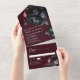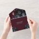 Set die Bühne für ein überwältigend elegantes Event mit dieser gotischen Einladung. Diese luxuriöse Blumen-Hochzeitseinladung mit einem Strauß aus schwarzen und roten Pfannkuchen und blauen Beeren vor einem roten Hintergrund. Es ist perfekt für eine dramatische und unvergessliche Feier. Sie sind ideal für Liebhaber von dunkler Romantik und zeitlosen Reiz.