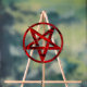 Rot, invertiert, strukturiert Pentagramm im Kreis, auf weißem Hintergrund. Okkultistisches Symbol. 666