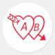 Red Double Hearts with Cupids Arrow and Initials Runder Aufkleber